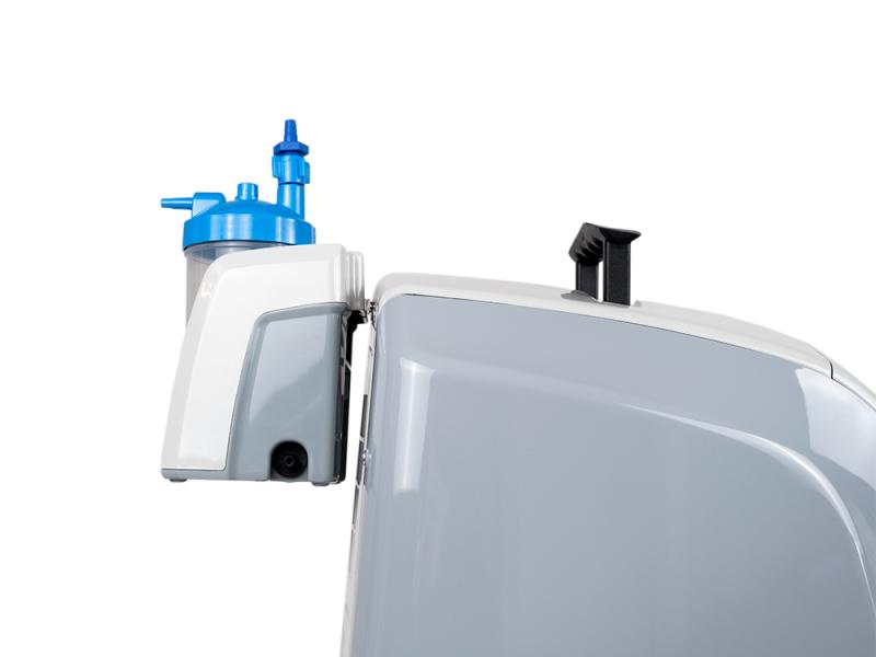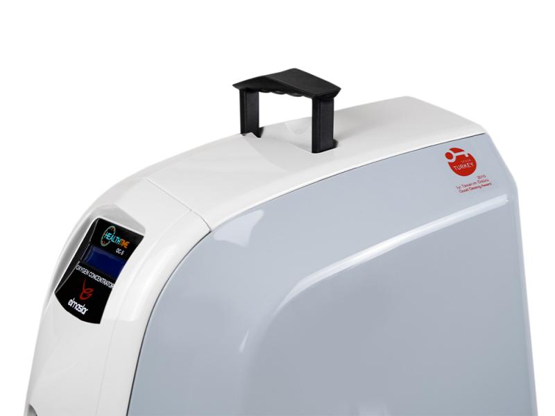 Mobilna i ergonomiczna konstrukcja - Koncentrator posiada ukryty uchwyt transportowy oraz kółka wykonane z miękkiego materiału, co ułatwia przemieszczanie urządzenia mimo jego wysokiej wydajności.