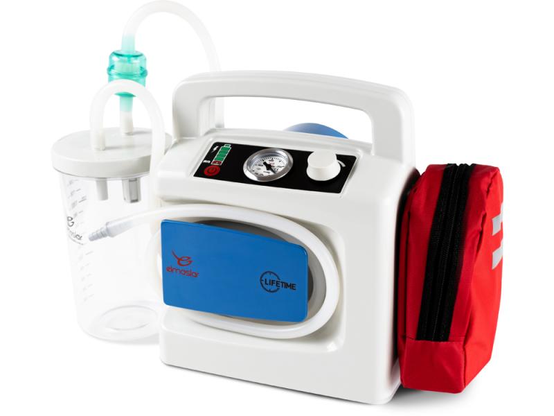 Ssak akumulatorowy karetkowy Lifetime SA02PB to przenośne i łatwe w użyciu urządzenie medyczne przeznaczone do szybkiego i bezpiecznego odsysania płynów. Dedykowany jest do zastosowań w karetkach pogotowia, pracy mobilnej oraz w placówkach medycznych, gdzie liczy się szybki dostęp do niezawodnego sprzętu. Wyposażony w precyzyjne pokrętło regulacji oraz wskaźnik LED pokazujący poziom naładowania akumulatora. Dzięki długiej żywotności baterii, uchwytowi ściennemu pełniącemu funkcję ładowarki i torbie na akcesoria, ssak SA02PB jest gotowy do pracy w każdych warunkach. Wydajność na poziomie 30 l/min zapewnia skuteczne działanie nawet w nagłych sytuacjach.